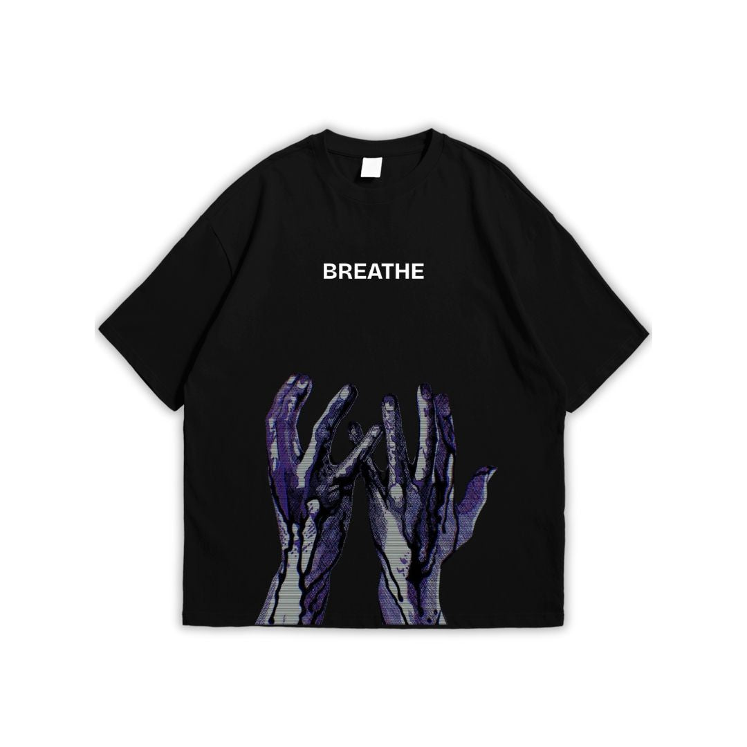 Premium oversized T-shirt featuring a bold “Breath” text and hands design on the front. Made from soft, high-quality cotton for a relaxed streetwear look and all-day comfort.